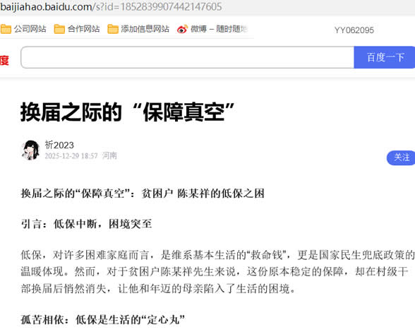 对于陈某祥这样的困难群众而言,低保金不仅是生活的“救命钱”,更是国家政策赋予的合法权益。希望相关部门能够关注到他的困境,介入调查此事,查明低保被无故取消的原因,督促村级组织规范履职,要么恢复其低保资格、补发停发的资金,要么给出合法合规的解释和处理方案。更重要的是,要以此为戒,加强对村级换届后社会救助工作的衔接与监管,避免类似的“保障真空”再次出现,让民生兜底政策真正温暖每一个需要帮助的人。
